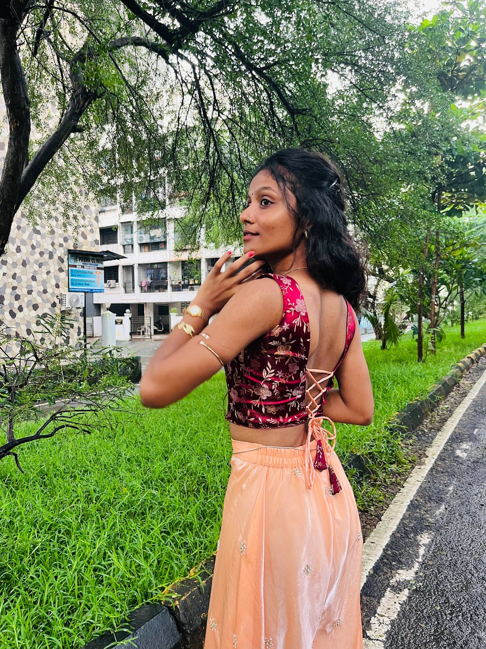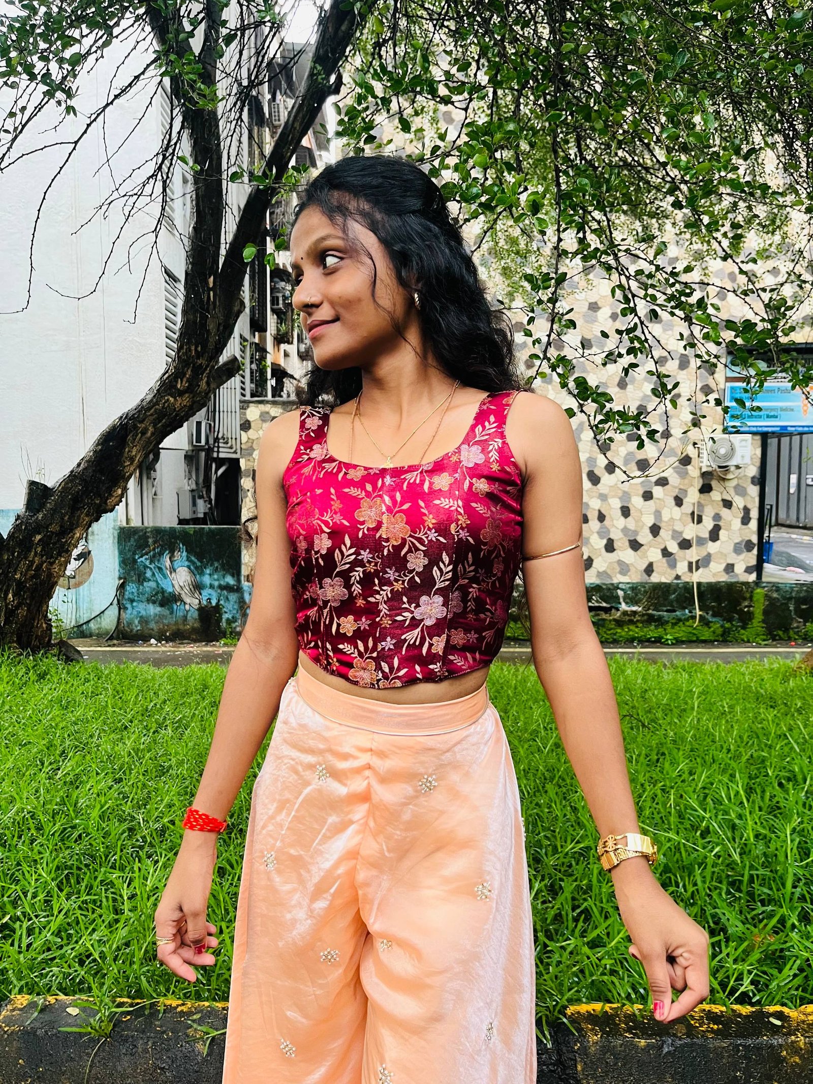 This corset top is crafted from burgundy banarasi fabric. It is a structured corset top with minimal stretch. It features boning details and a back criss cross.